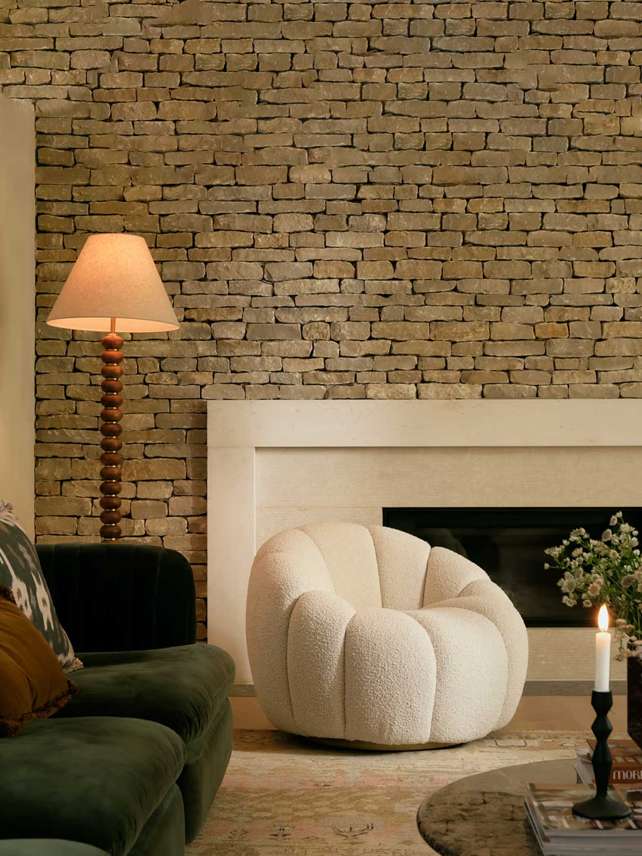 A style seen throughout our Houses, the Garret armchair is recognised for its versatile rounded silhouette. Perched on a contemporary, swivel brass base, it comes fully upholstered in tactile boucle, designed to mix-and-match across our collection or to pair with the coordinating footstool.